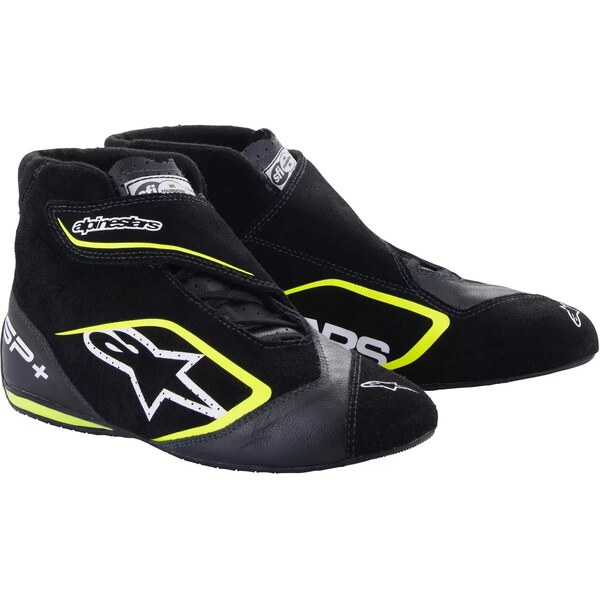 Driving Shoe - SP+ - Mid-Top - SFI 3.3 - FIA Approved - Suede Outer - Nomex Inner - Black / Fluorescent Yellow - Size 10 - Pair