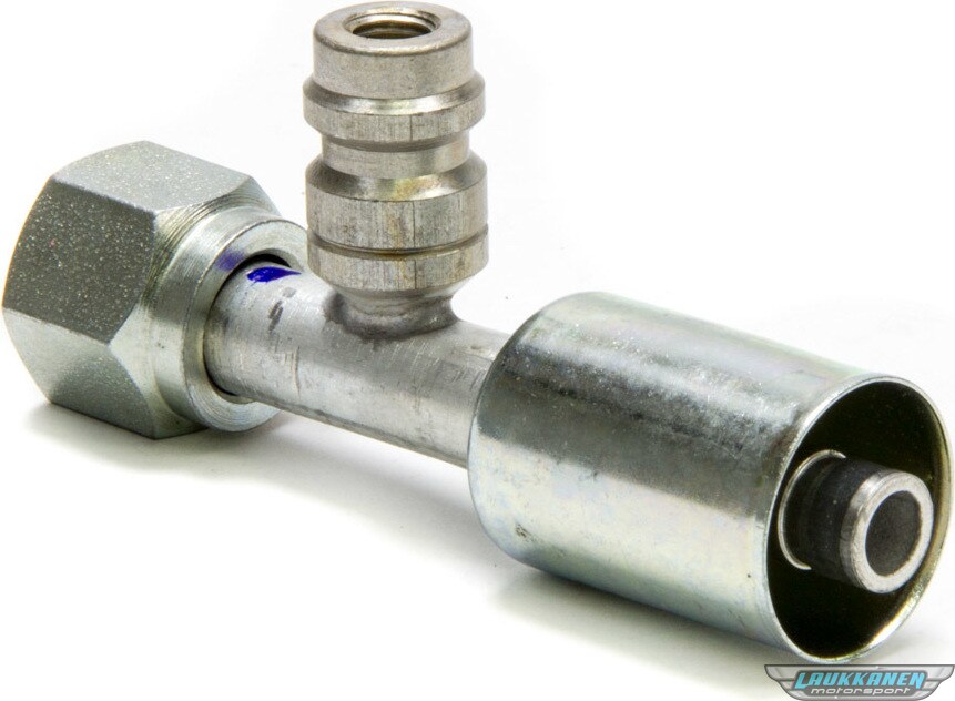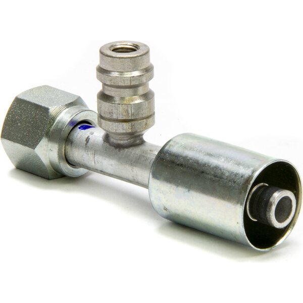 ProduktbeskrivelseFitting - Hose End - AC Refrigerant - Straight - 8 AN Hose Crimp to 8 AN Female O-Ring - Charge Port - Aluminum / Steel - Natural / Zinc Oxide - Each