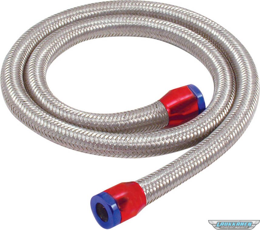 ProduktbeskrivelseFuel Line - 3/8 in - 3 ft - Blue / Red Clamps - Braided Stainless - Kit
