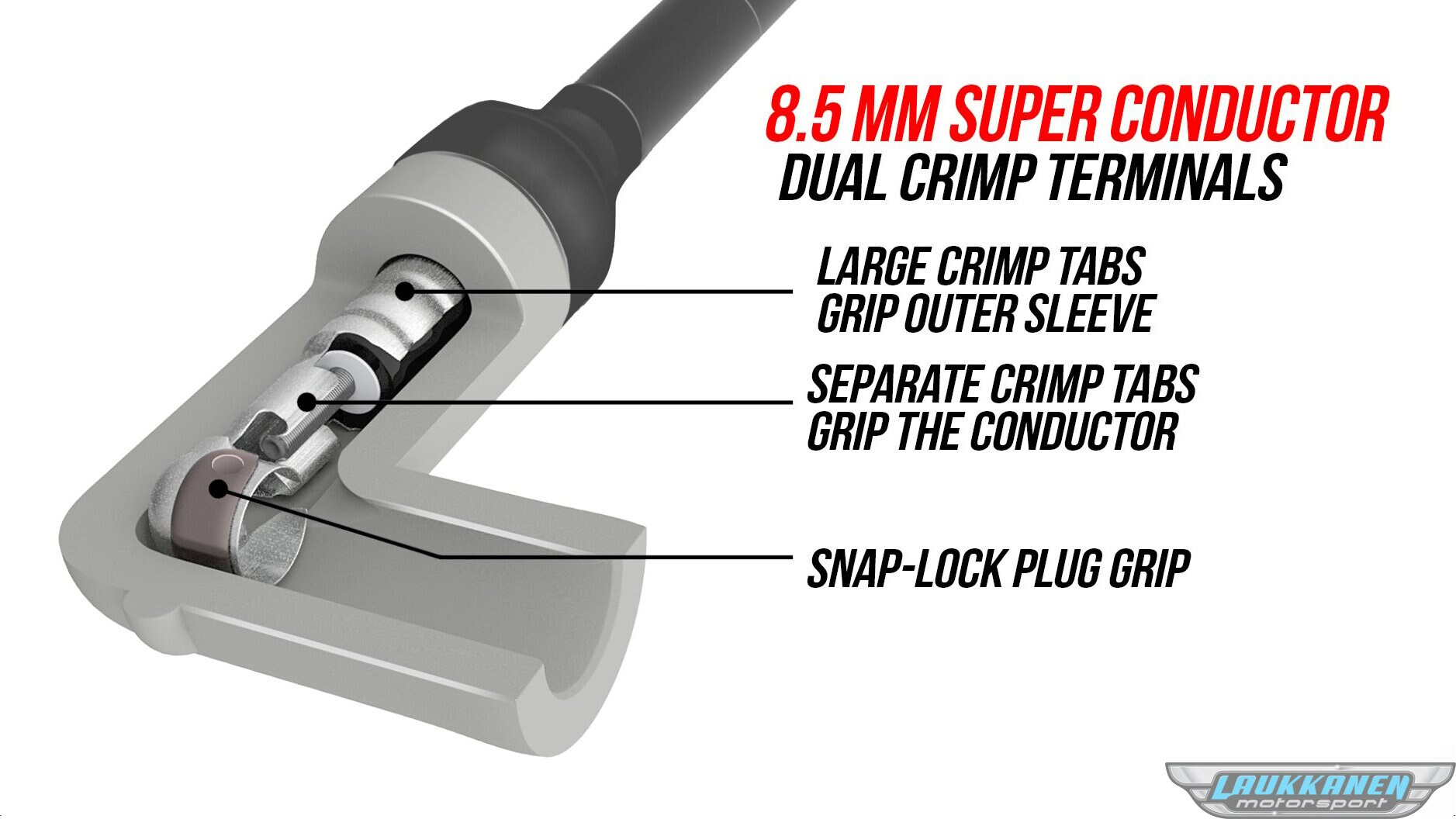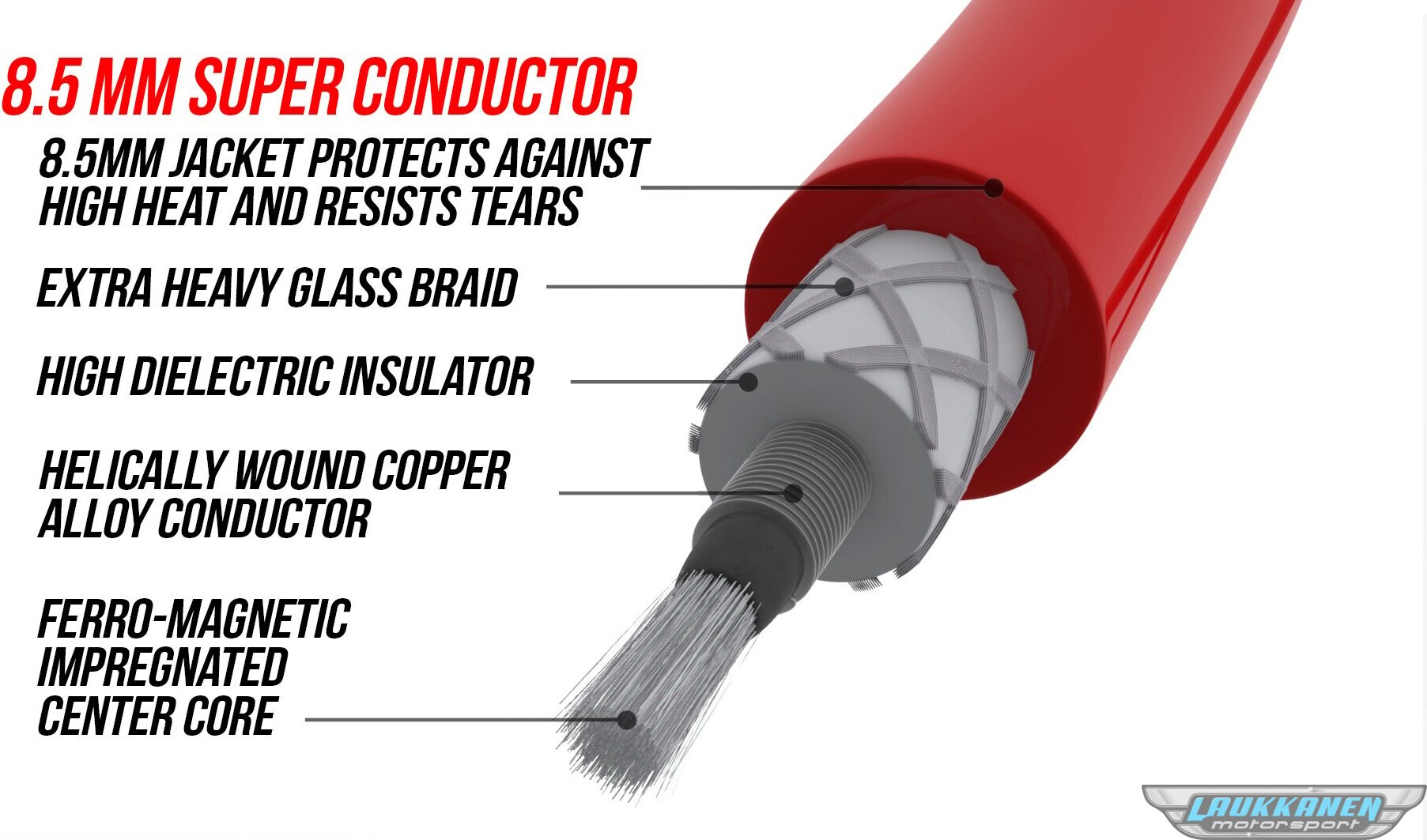 The MSD 8.5 mm Super Conductor wire is not based on a traditional carbon-core conductor. Instead, it uses a ferromagnetic core wrapped with a copper alloy winding. This design allows extremely low resistance without allowing electromagnetic interference to become an issue.