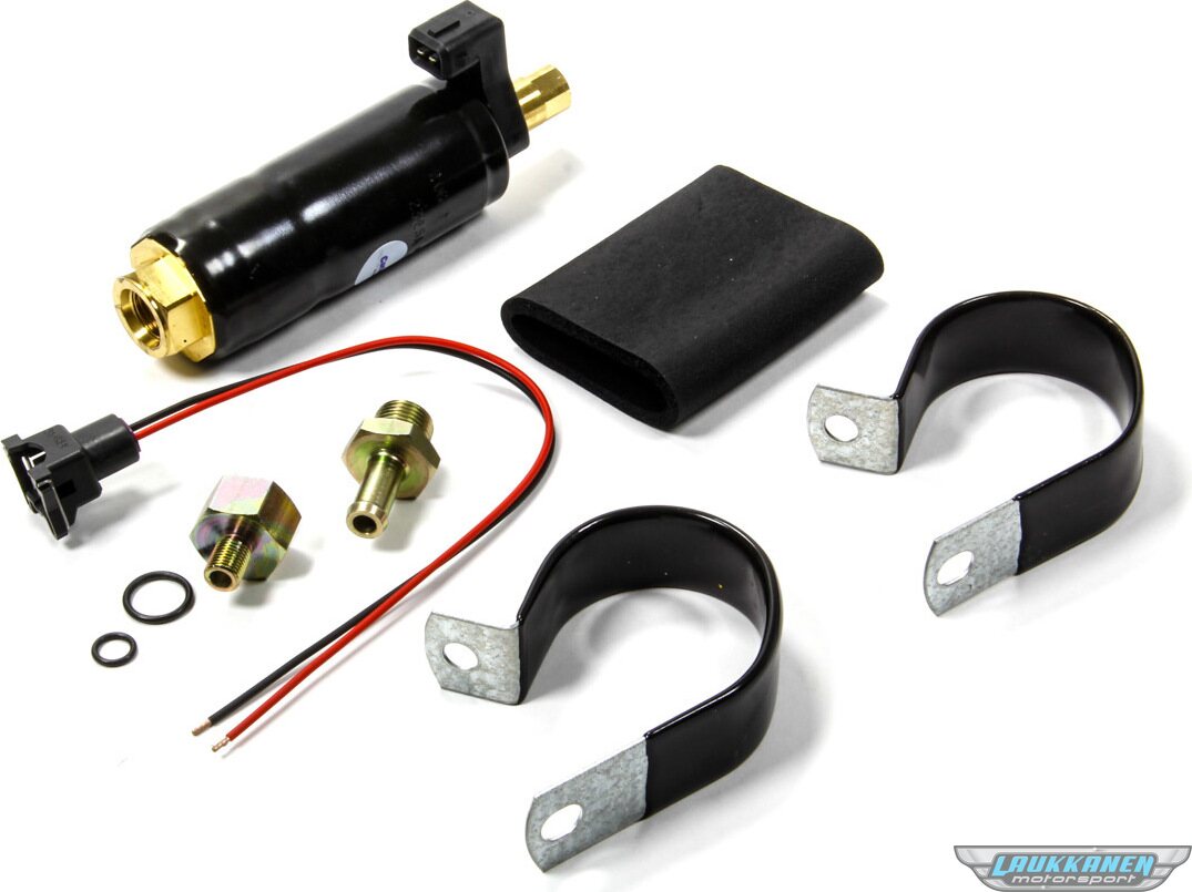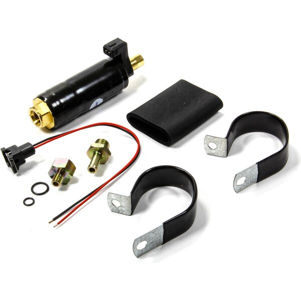 Fuel Pump - Electric - In-Line - 50 gph - 20 psi - 3/8 in Hose Barb Inlet Fitting - 5/8 in Inverted Flare Female Outlet Fitting - Mounting Bracket / Hardware - Gas - Each 9-22 PSI 50GPH @20 PSI Inlet size: 5/8-18 Outlet size: -3 ORB Adapter sizes are 3/8-24 (#3) to 5/8-18 and 5/18-18 to 3/8 slip fit hose To use # 6 on both ends you can use AERFCM2964 on both ends- P5001