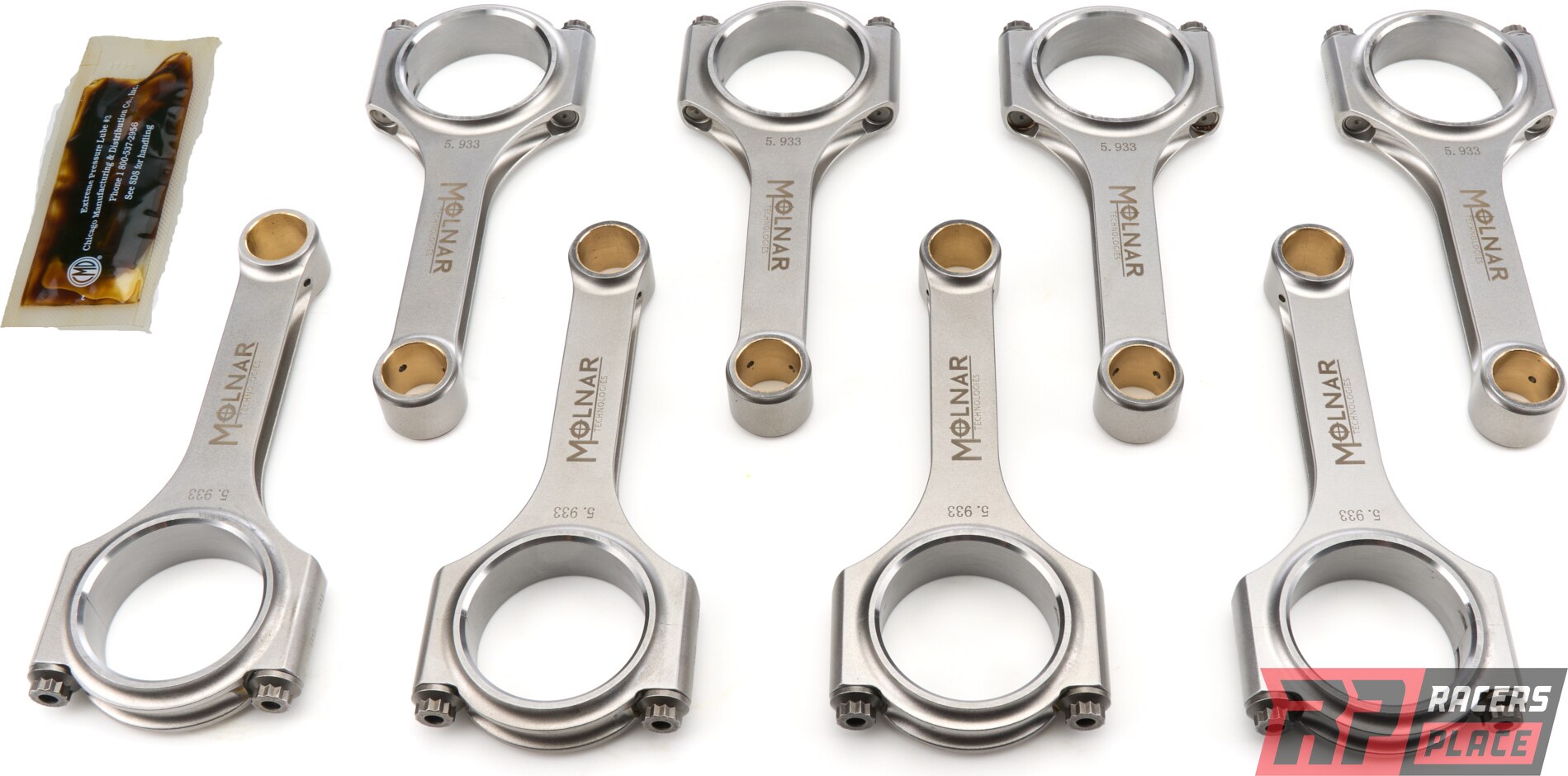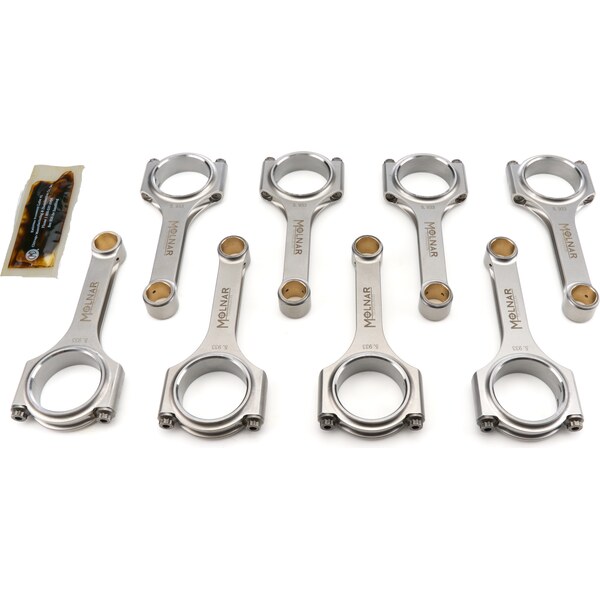 Product descriptionConnecting Rod - H Beam - 5.933 in Long - 7/16 in Cap Screws - ARP2000 Bolt - Billet Steel - Ford Modular - Set of 8