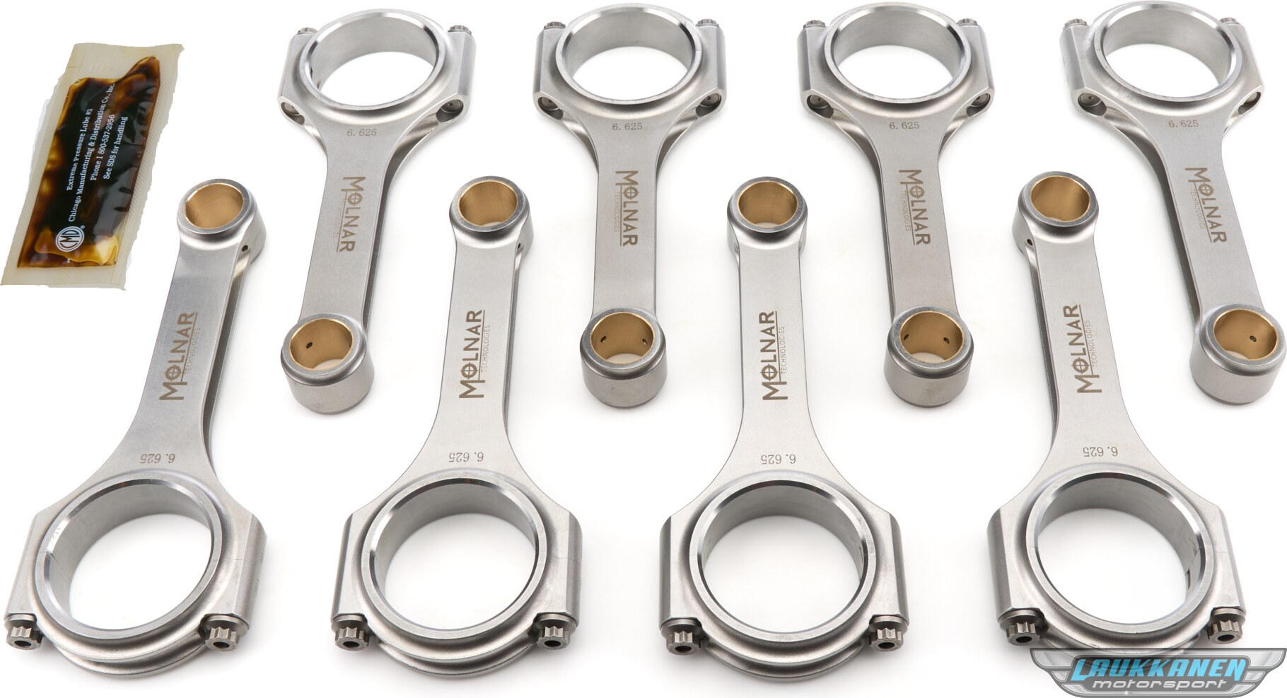 Additional information C-C length: 6.625 in. | Weight: 766 g | Bolt: 7/16 ARP2000 | Big end bore: 2.375 in. | Pin size: 0.980 in. molnartechnologies.com