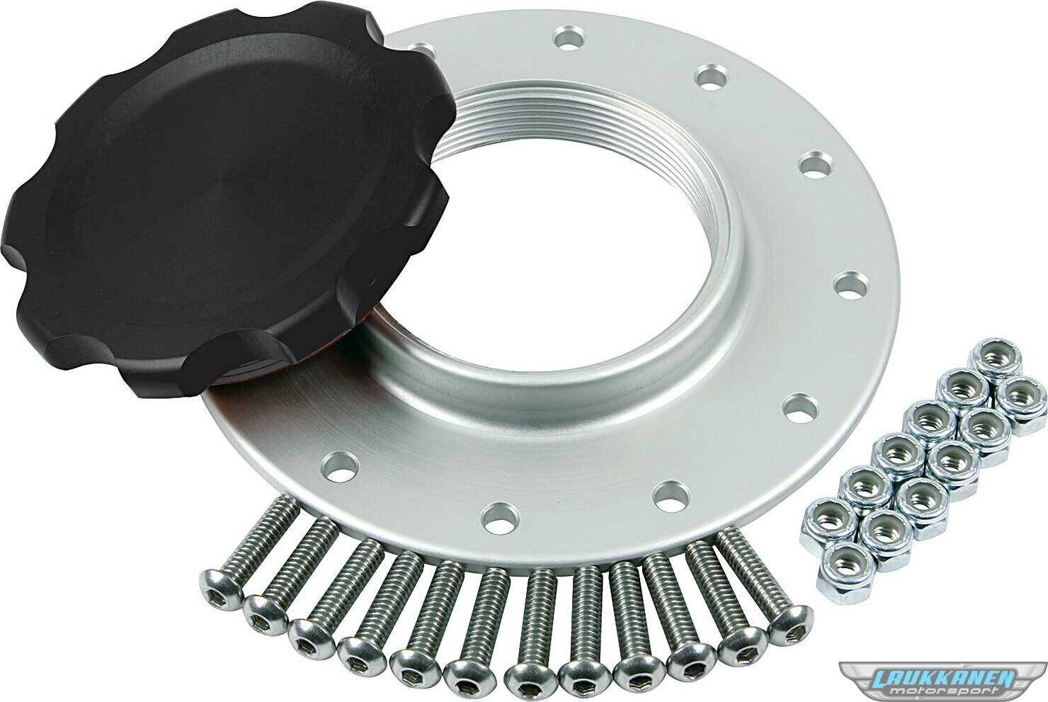 Product descriptionFuel Filler Cap Assembly - Screw-In - Aluminum - Black Anodized - 12-Bolt JAZ / RCI Fuel Cells - Each