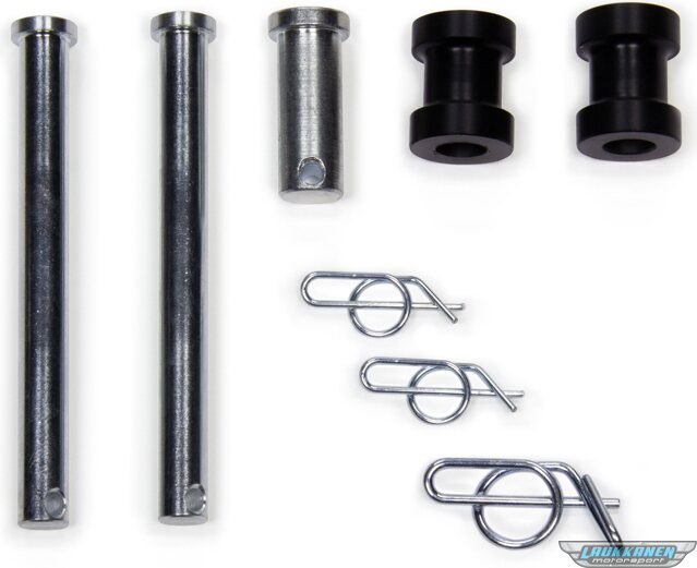DescripciónJacobs Ladder Pin - 1/2 in Diameter - One 1-1/2 in and Two 3-3/4 in Long Pins - Clips / Spacers Included - Steel - Zinc Oxide - Sprint Car - Kit
