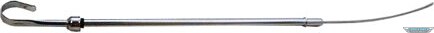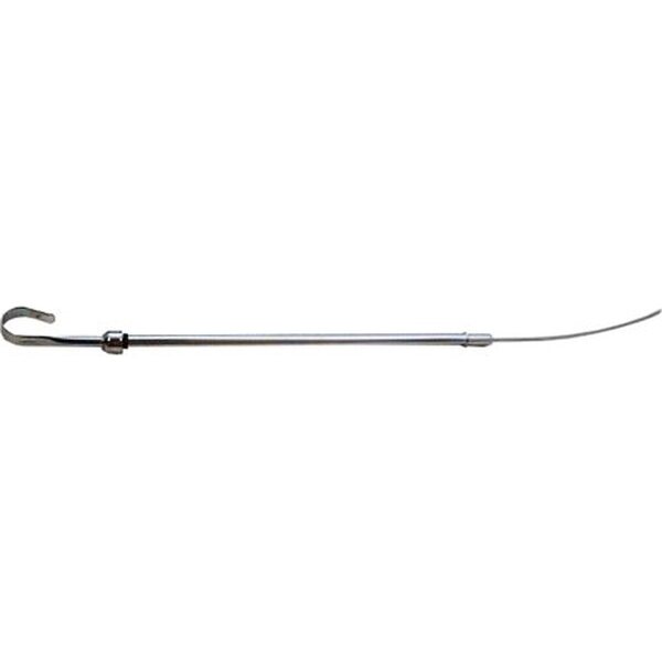 DescripciónEngine Oil Dipstick - Solid Tube - Block Mount - 21 in Long - Steel - Chrome - Small Block Mopar - Each