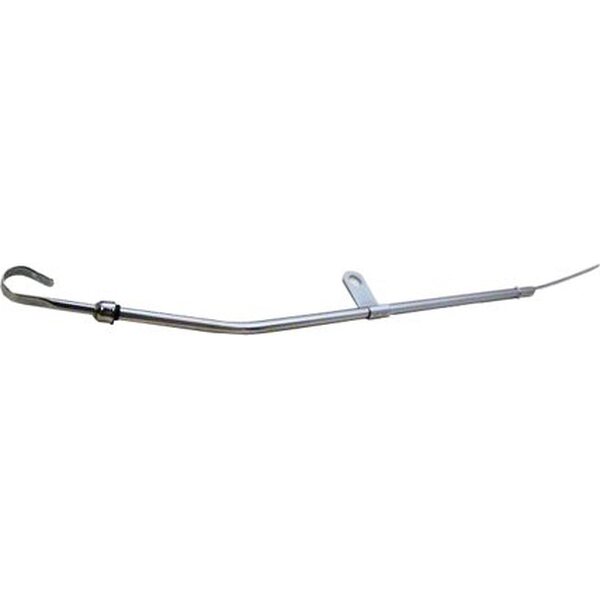 DescripciónEngine Oil Dipstick - Solid Tube - Block Mount - 23 in Long - Steel - Chrome - Mopar B / RB-Series - Each