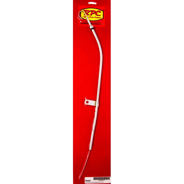 DescripciónEngine Oil Dipstick - Solid Tube - Block Mount - 23 in Long - Steel - Chrome - Small Block Chevy - Each