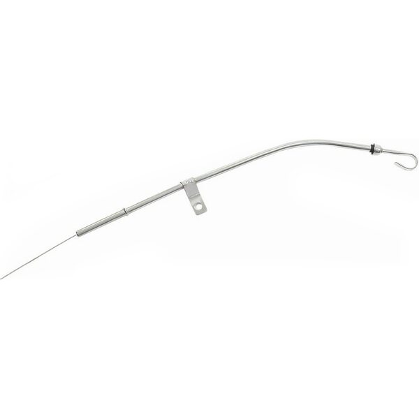 DescripciónEngine Oil Dipstick - Passenger Side - Solid Tube - Pan Mount - Steel - Chrome - Small Block Chevy - Each