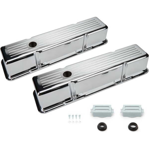 Toote kirjeldusValve Cover - Tall - 3-11/16 in Height - Baffled - Breather Holes - Grommets Included - Ball Milled - Aluminum - Chrome - Small Block Chevy - Pair
