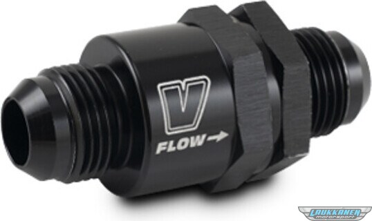 Toote kirjeldusCheck Valve - Piston - 10 AN Male Inlet - 10 AN Male Outlet - External - Aluminum - Black Anodized - Universal - Each