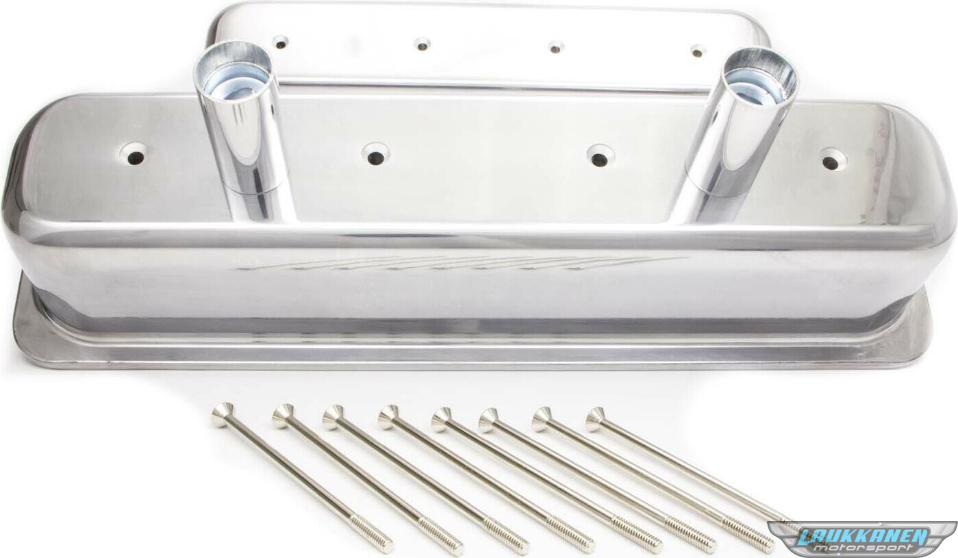 Toote kirjeldusValve Cover - Tall - 3-11/16 in Height - Breather Tubes - Aluminum - Polished - Center Bolt - Circle Track - Small Block Chevy - Pair