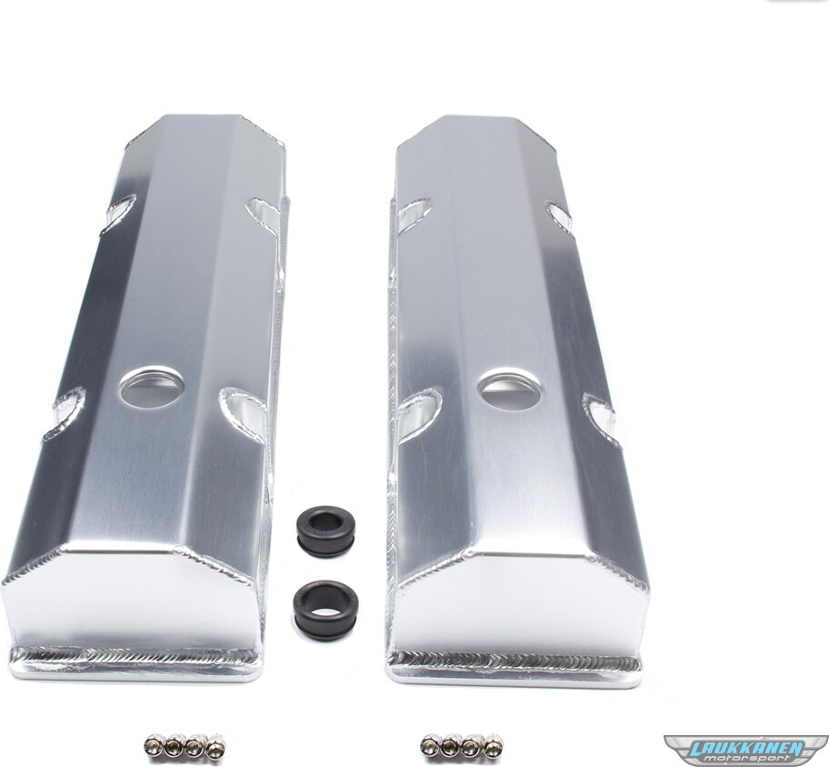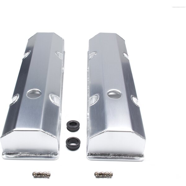 Description du produit Valve Cover - Tall - 3-1/2 in Height - Hardware Included - Flat Top - Fabricated Aluminum - Clear Anodized - Small Block Chevy - Pair
