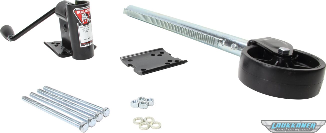 Produkt beskrivelseTrailer Jack - Bulldog - 169R - Manual - Caster - 16 in Of Travel - 750 lb Capacity - Mounting Bracket Included - Steel - Black Paint - Each - 1692010178