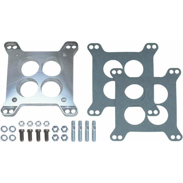 Carburetor Adapter - 1/2 in Thick - 4 Hole - Square Bore to Rochester 4-Barrel - Gasket / Hardware - Aluminum - Natural - Each