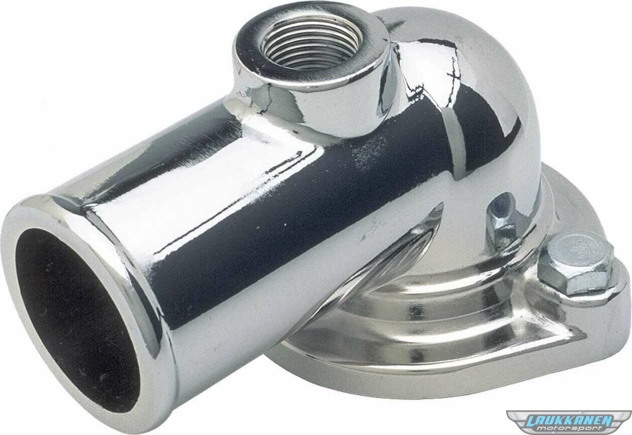 Water Neck - 90 Degree - 1-1/2 in ID Hose - 3/8 in NPT Female Port - O-Ring - Hardware Included - Steel - Chrome - Big Block Ford - Each
