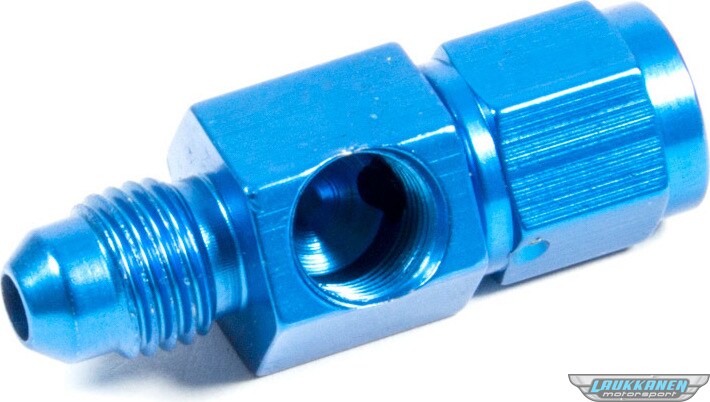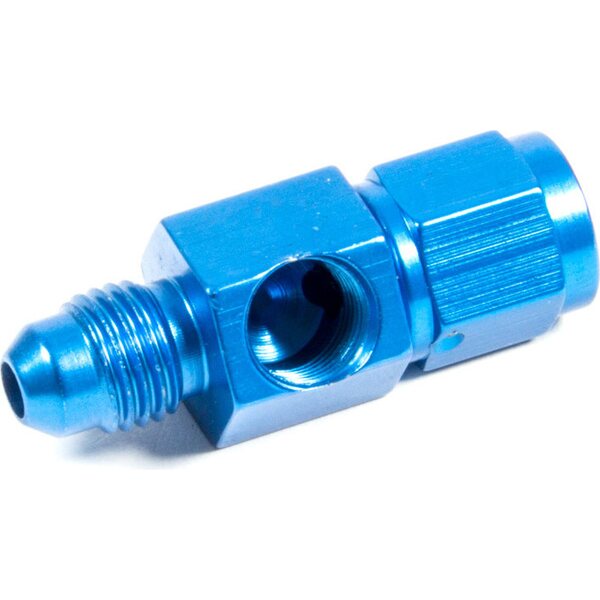 Fitting - Gauge Adapter - Straight - 4 AN Male to 4 AN Female - 1/8 in NPT Gauge Port - Aluminum - Blue Anodized - Each