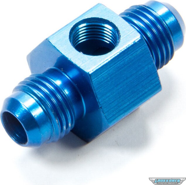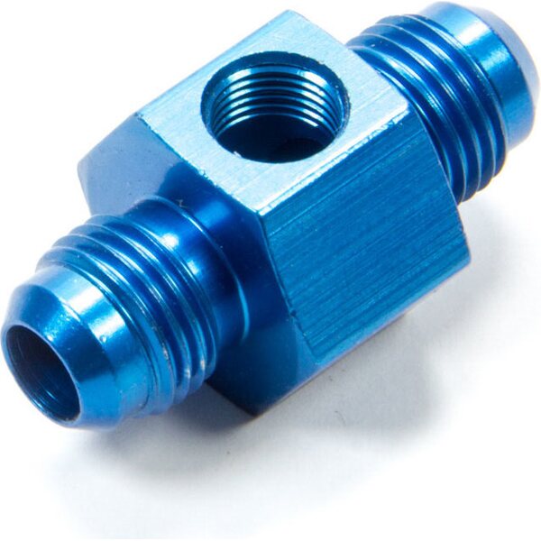 Fitting - Gauge Adapter - Straight - 6 AN Male to 6 AN Male - 1/8 in NPT Gauge Port - Aluminum - Blue Anodized - Each