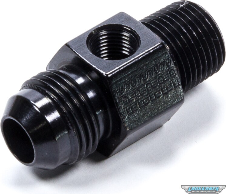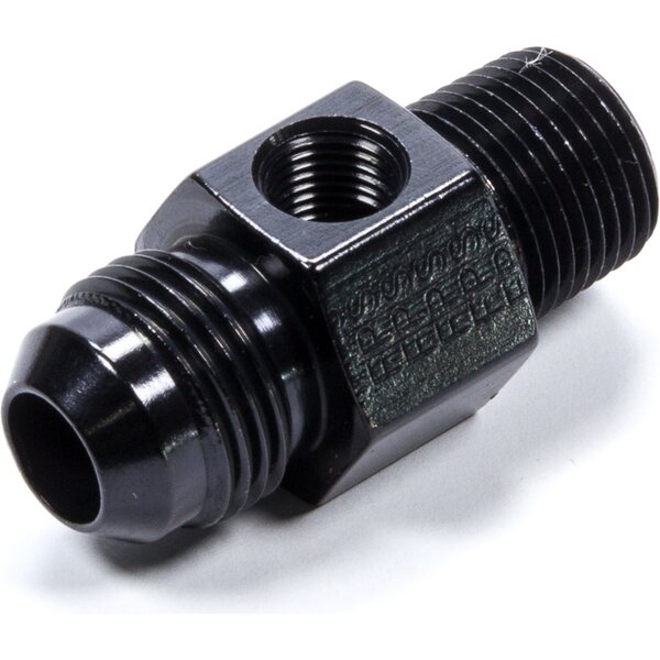 Fitting - Gauge Adapter - Straight - 8 AN Male to 3/8 in NPT Male - 1/8 in NPT Gauge Port - Aluminum - Black Anodized - Each