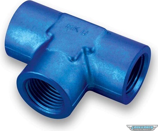 Fitting - Adapter Tee - 1/8 in NPT Female x 1/8 in NPT Female x 1/8 in NPT Female - Aluminum - Blue Anodized - Each