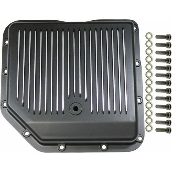 Transmission Pan - Stock Depth - Finned - Aluminum - Black Paint - TH350 - Each