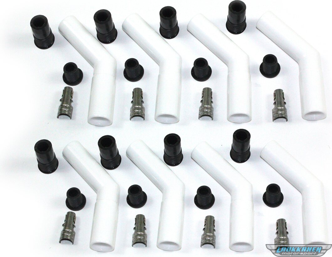 Boot / Terminal Kit - Spark Plug - 8 mm - Ceramic - White - 45 Degree - Set of 8