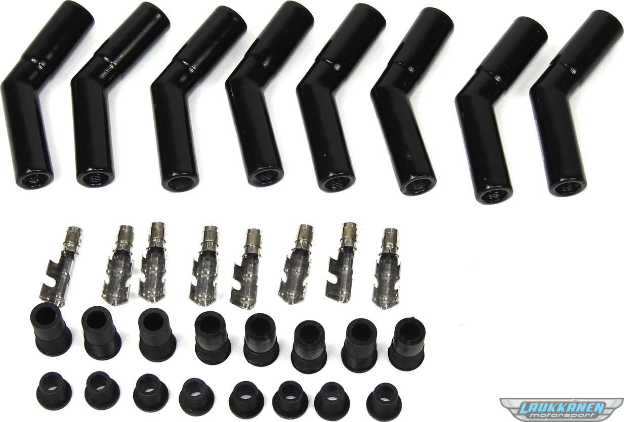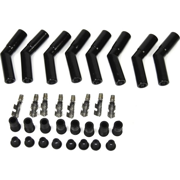 Boot / Terminal Kit - Spark Plug - 8 mm - Ceramic - Black - 45 Degree - Set of 8