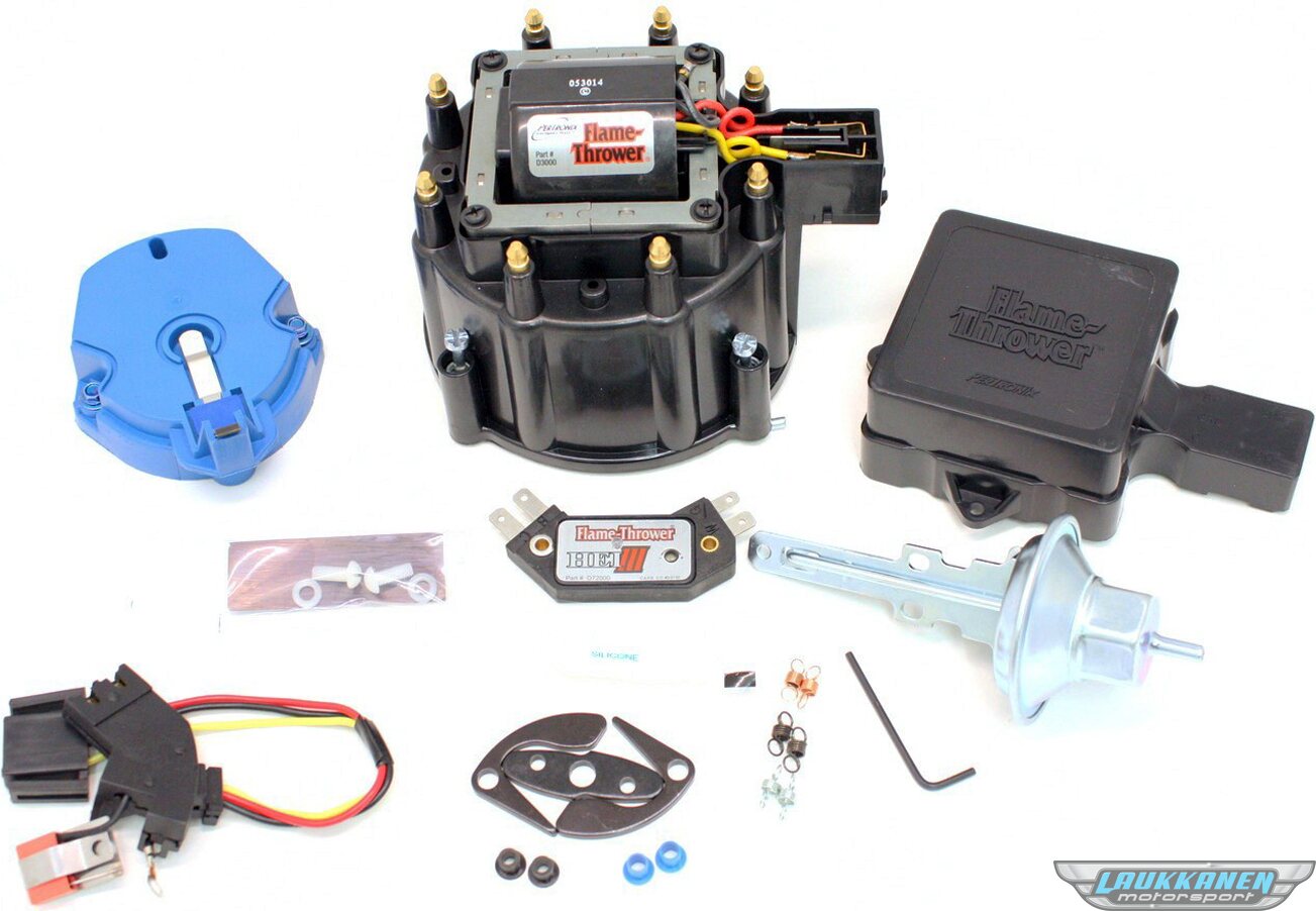 Ignition Tune Up Kit - Flamethrower - HEI - Cap / Rotor / Coil / Coil Cover / Vacuum Lock Out / Wiring Harness - Small Block Chevy - Kit