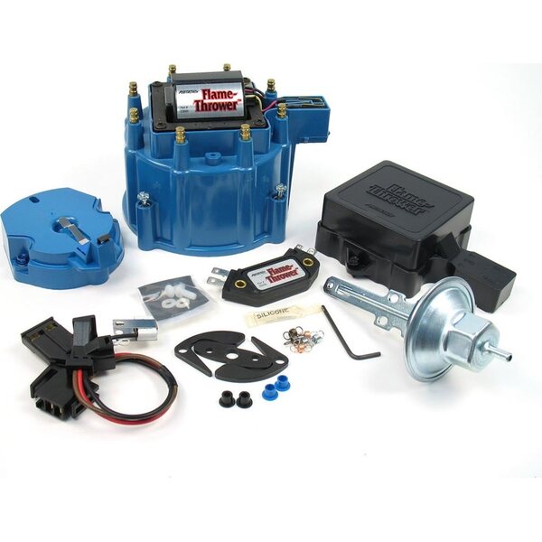 Distributor Tune Up Kit - Cap / Coil / Module / Rotor / Vacuum Advance / Vacuum Canister - Blue - Chevy / Cadillac V8 - Kit