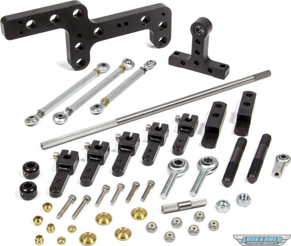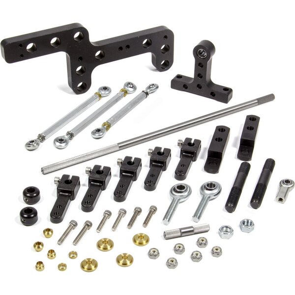Produkt beskrivelseThrottle Linkage - Side Mount - Dual Quad - Aluminum / Steel - Black Anodized / Zinc Oxide - Square Bore Carburetors - Small Block Chevy - Kit