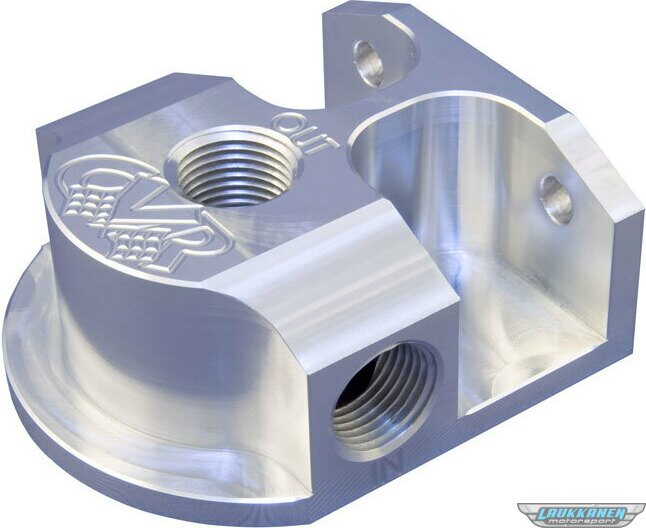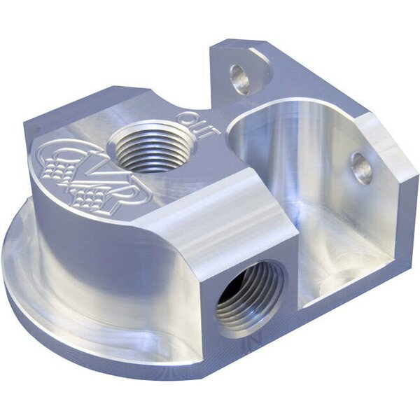 Remote Oil Filter Mount - 13/16-16 in Thread - 1/2 in NPT Inlet - 1/2 in NPT Outlet - Bolt-On - Aluminum - Clear Anodized - HP4 Filters - Each