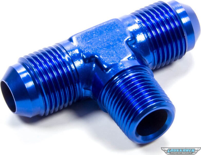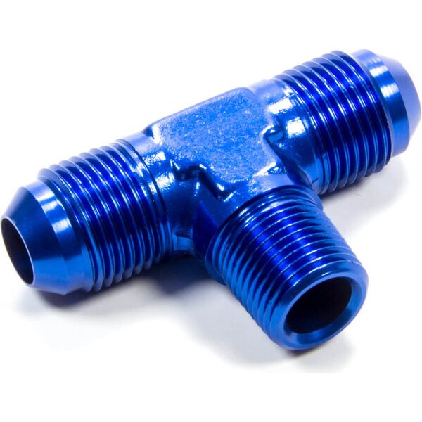 Fitting - Adapter Tee - 8 AN Male x 8 AN Male x 3/8 in NPT Male - Aluminum - Blue Anodized - Each