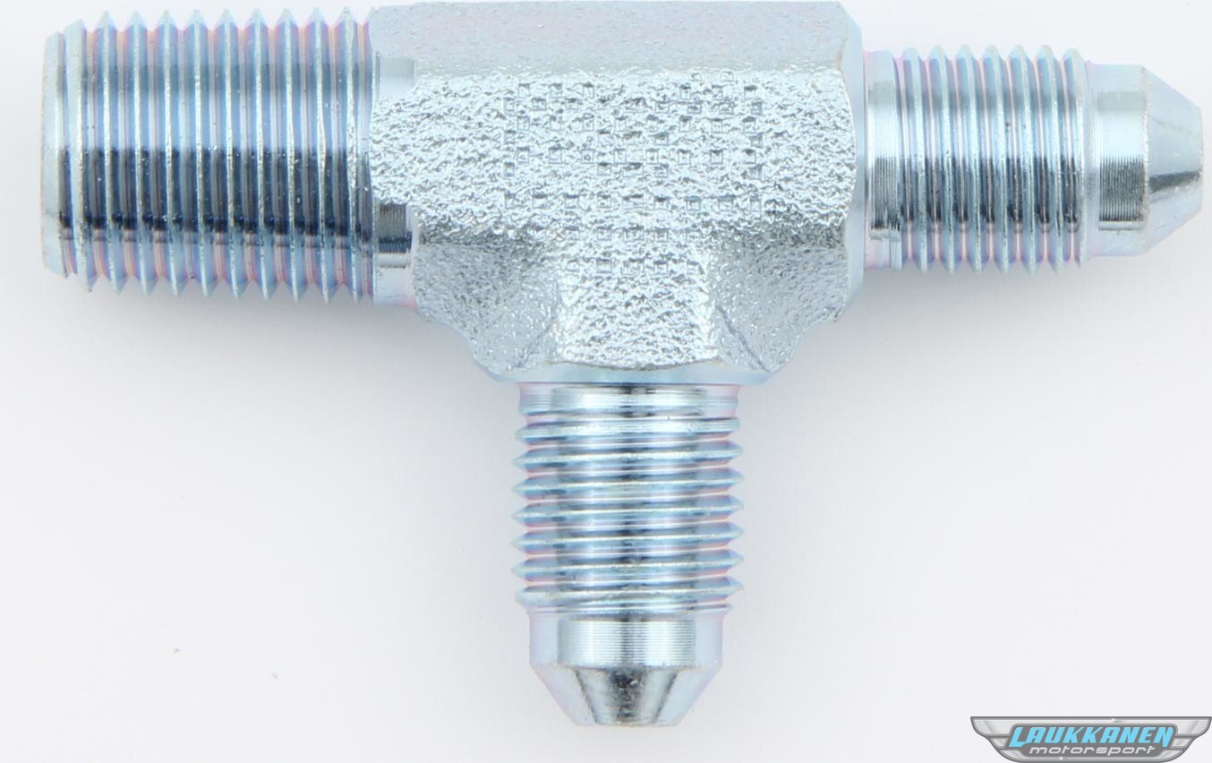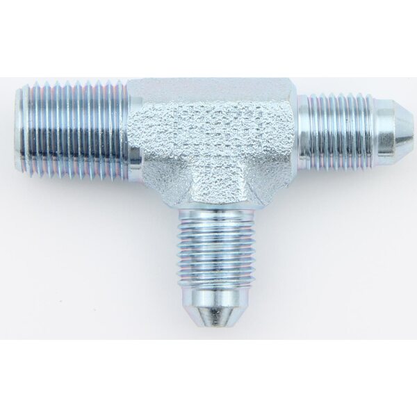 Fitting - Adapter Tee - 4 AN Male x 1/4 in NPT Male x 4 AN Male - Steel - Natural - Each