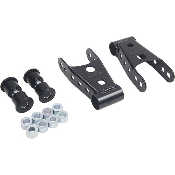 Spring Shackle - 1 to 2 in Drop - Rubber Bushings - Steel - Black Powder Coat - Ford Fullsize Truck 2014-20 - Kit