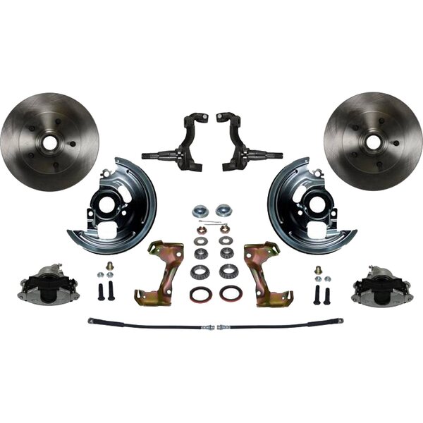 Brake System - Disc Conversion - Front - 1 Piston Caliper - 11 in Solid Rotors - Spindles - Iron - Natural - GM A-Body / F-Body / X-Body - Kit
