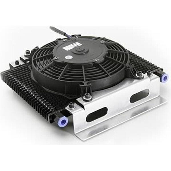 Produkt beskrivelseFluid Cooler - 7-1/2 x 11 x 4-1/2 in - Plate Type - 5/16-24 in Inverted Flare Female Inlet / Outlet - 11/32 in Hose Barb Adapter - Brackets - Puller Fan - Aluminum - Black Paint - Universal - Kit