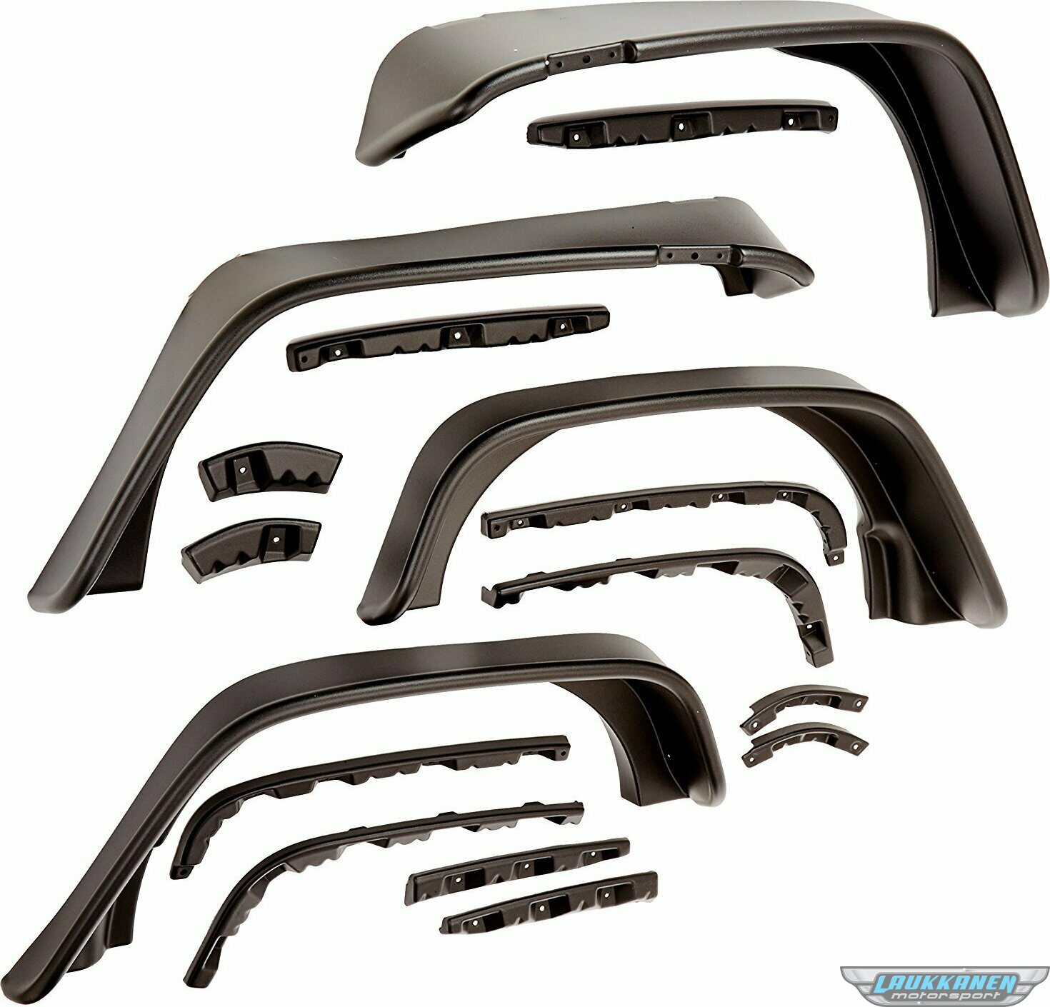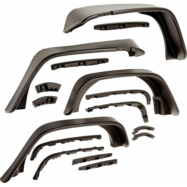 Fender Flare - Flat Style - Front / Rear - 9-1/2 in Wide Front - 4-3/4 in Wide Rear - Plastic - Black - 4-Door - Jeep Wrangler JKU 2007-14 - Kit