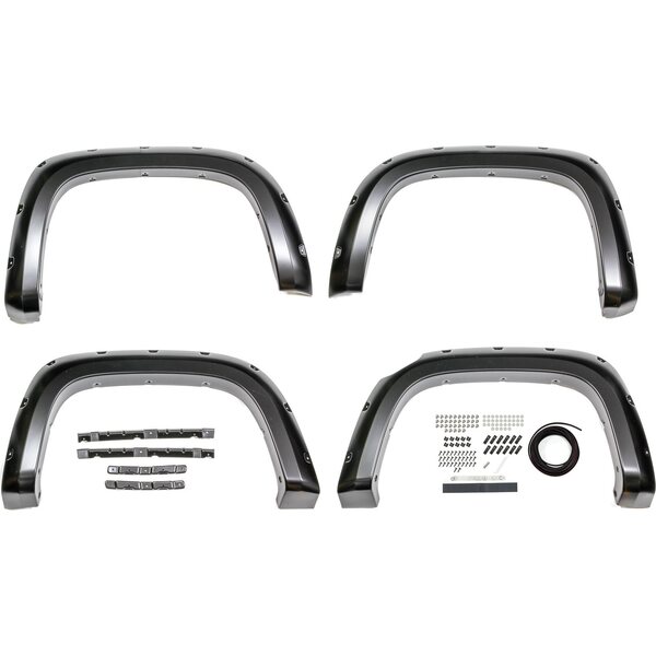 Produkt beskrivelseFender Flare - Pocket Style - Front / Rear - 1-1/2 in Wide - Plastic - Black - 61 in Bed - Chevy Colorado 2015-17 - Kit