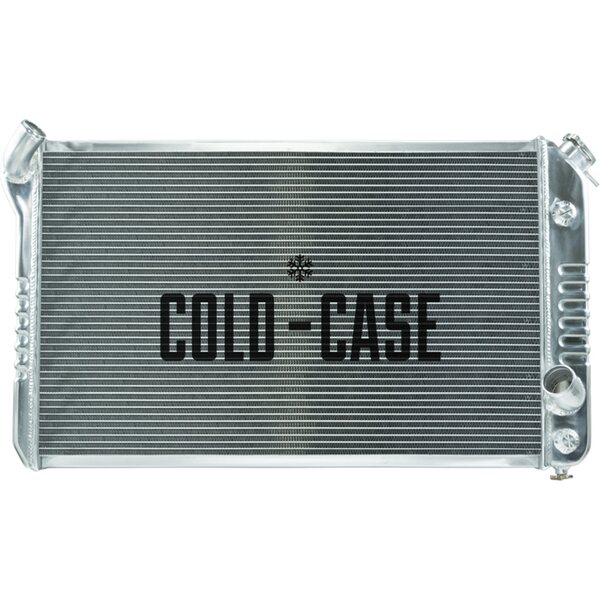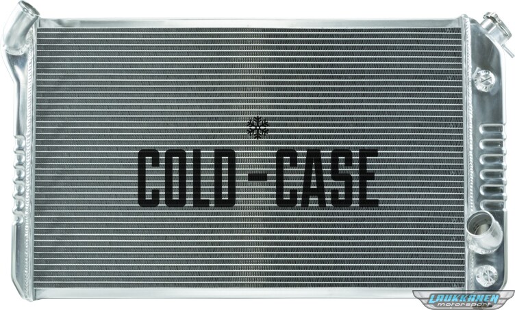 1973-1976 Chevrolet Corvette C3 Aluminum Performance Radiator. These COLD-CASE radiators are Tig welded 100 percent aluminum and absolutely beautiful. Don't buy a 3 or 4 row aluminum radiator! It doesn't cool as good as these oversize 2 row models.