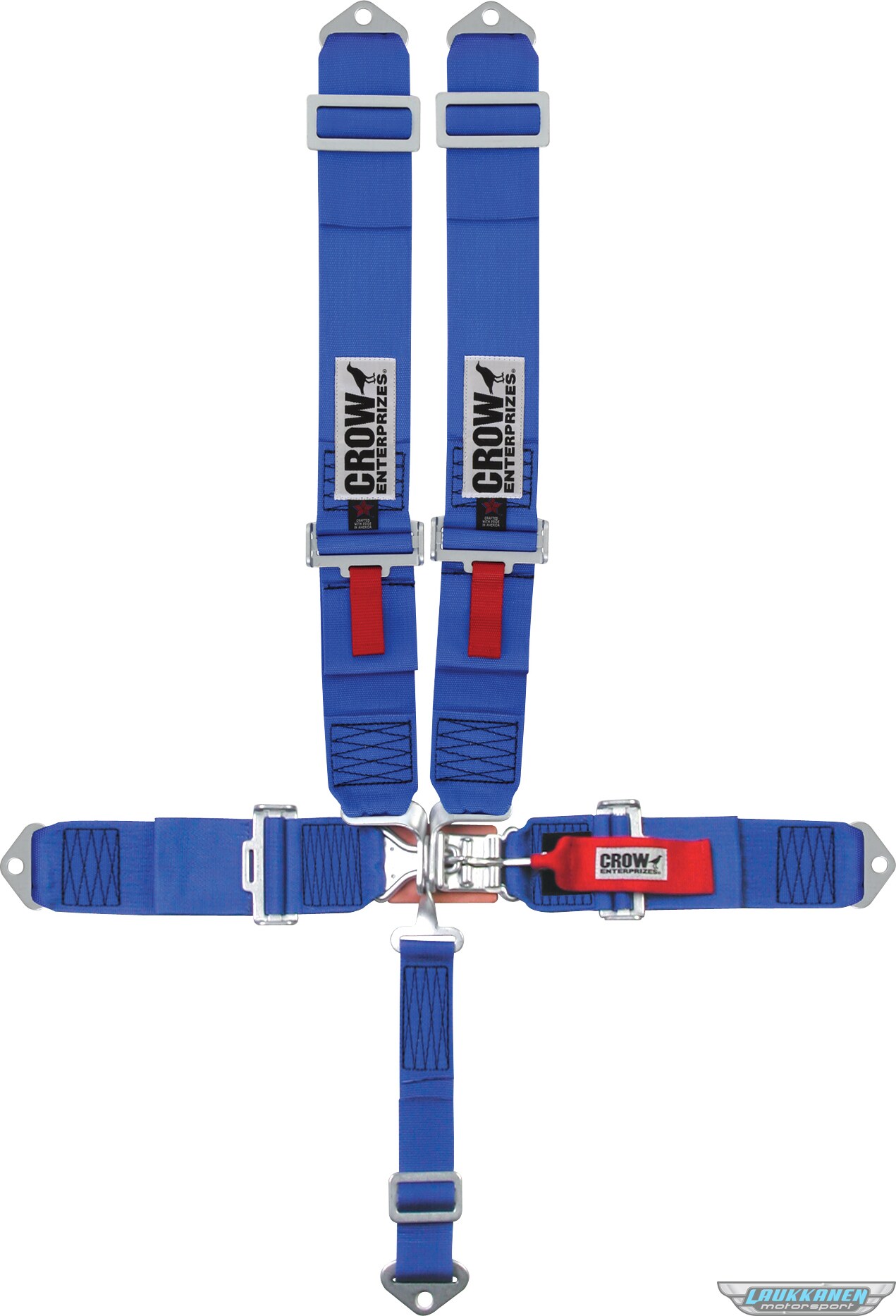 Produkt beskrivelseHarness - 5 Point - Latch and Link - SFI 16.1 - 50 in Length - Pull Down Adjust - Bolt-On / Wrap Around - Individual Harness - Black Hardware - Blue - Kit