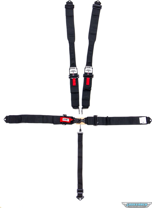 Produkt beskrivelseHarness - 5 Point - Latch and Link - SFI 16.1 - 50 in Length - Pull Down Adjust - Bolt-On / Wrap Around - Individual Harness - HANS Ready - Black - Kit