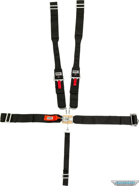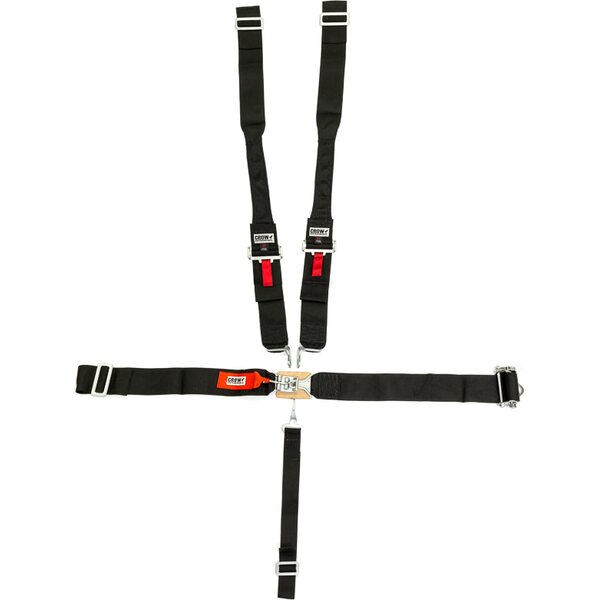 Produkt beskrivelseHarness - 5 Point - Latch and Link - SFI 16.1 - Pull Down / Ratchet Adjust - Bolt-On / Wrap Around - Individual Harness - HANS Ready - Black - Kit
