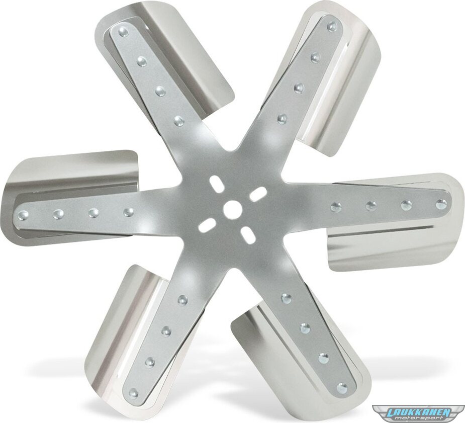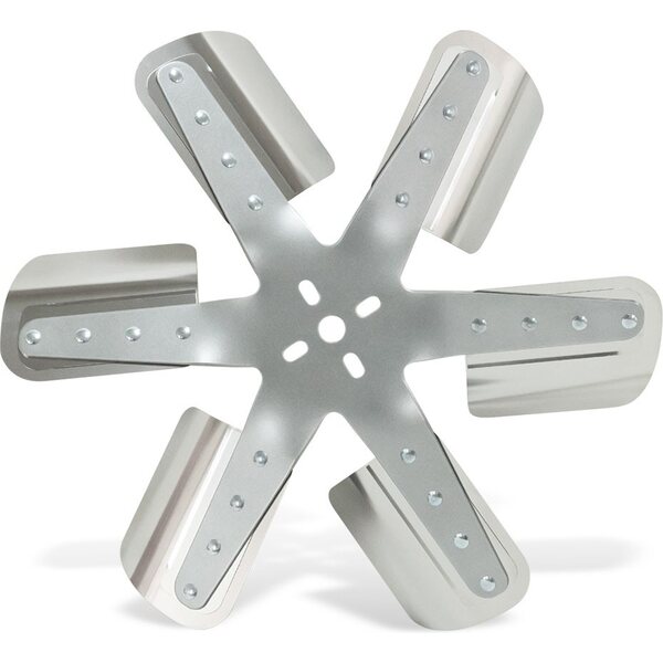 Produkt beskrivelseMechanical Cooling Fan - Reverse Rotation Flex Fan - 17 in Fan - 6 Blade - 5/8 in Pilot - 1-3/4 to 2-1/2 in Bolt Pattern - Steel Hub / Stainless Blades - Silver / Natural - Each