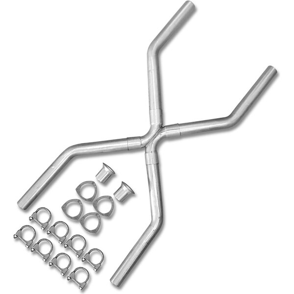 Exhaust X-Pipe - 3 in Diameter - Cut-To-Fit - Clamps / Collectors Included - Steel - Natural - Universal - Kit