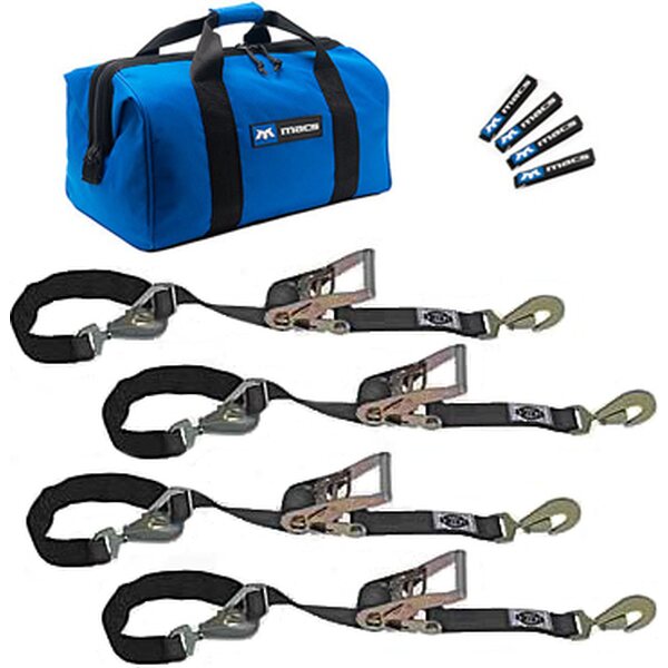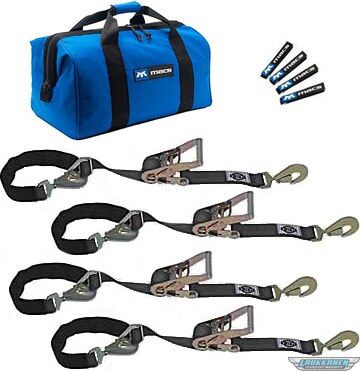 Tie Down Strap Kit - Super Pack - Four 2 x 8 ft Twisted Hook Combination Ratchet Straps - Gear Bag - Blue - Kit