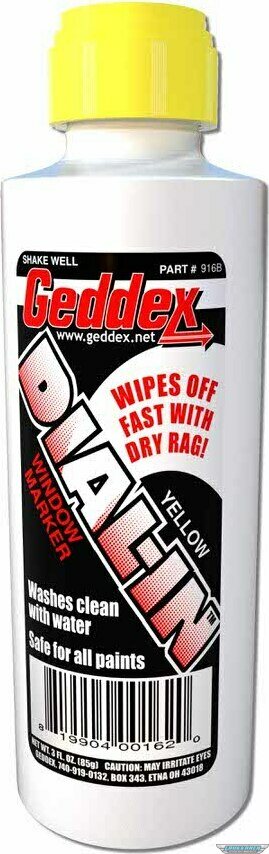 Produkt beskrivelseDial-In Marker - Dial-In - Window - Yellow - Safe on Glass / Polycarbonate / Rubber - 3 oz Bottle / Applicator - Each