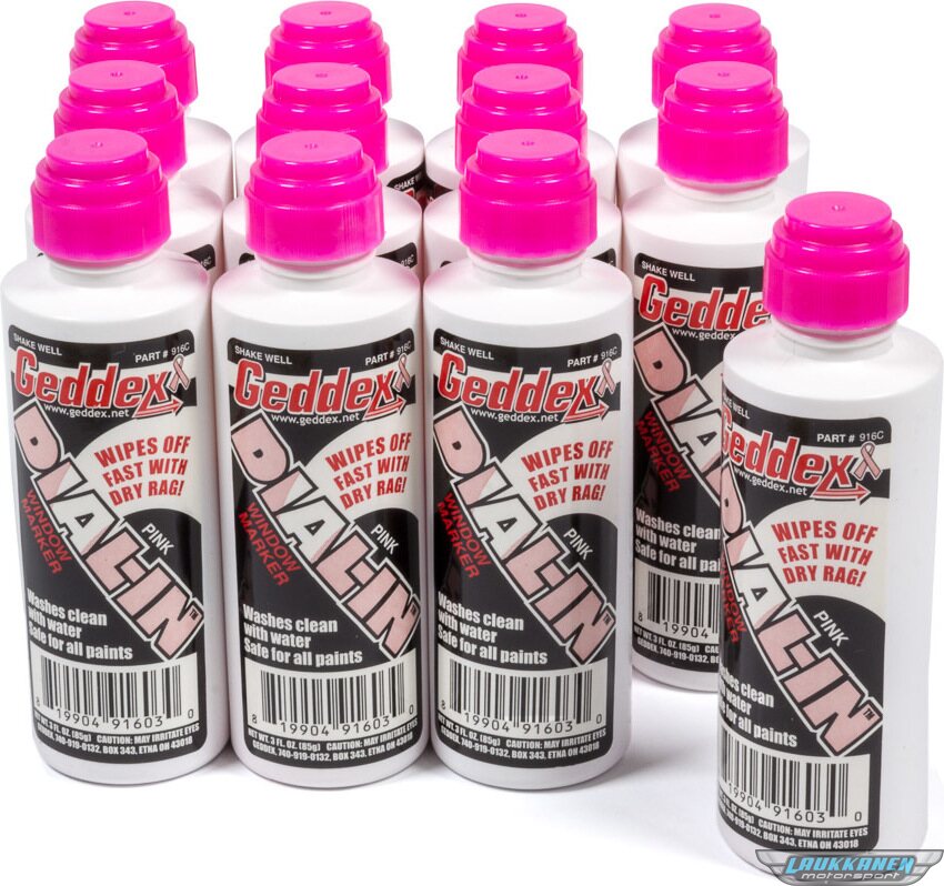 Produkt beskrivelseDial-In Marker - Dial-In - Window - Pink - Safe on Glass / Polycarbonate / Rubber - 3 oz Bottle / Applicator - Set of 12