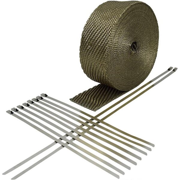 Exhaust Wrap Kit - Lava Heatshield - 2 in Wide - 50 ft Roll - 1200 Degrees - Basalt - Stainless Locking Ties - Kit