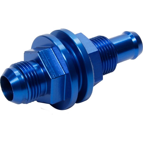 Produkt beskrivelseFitting - Bulkhead - Straight - 12 AN Male to 3/4 in Hose Barb - Compression Ring / Jam Nut / Washer - Aluminum - Blue Anodized - Saldana Fuel Cells - Kit