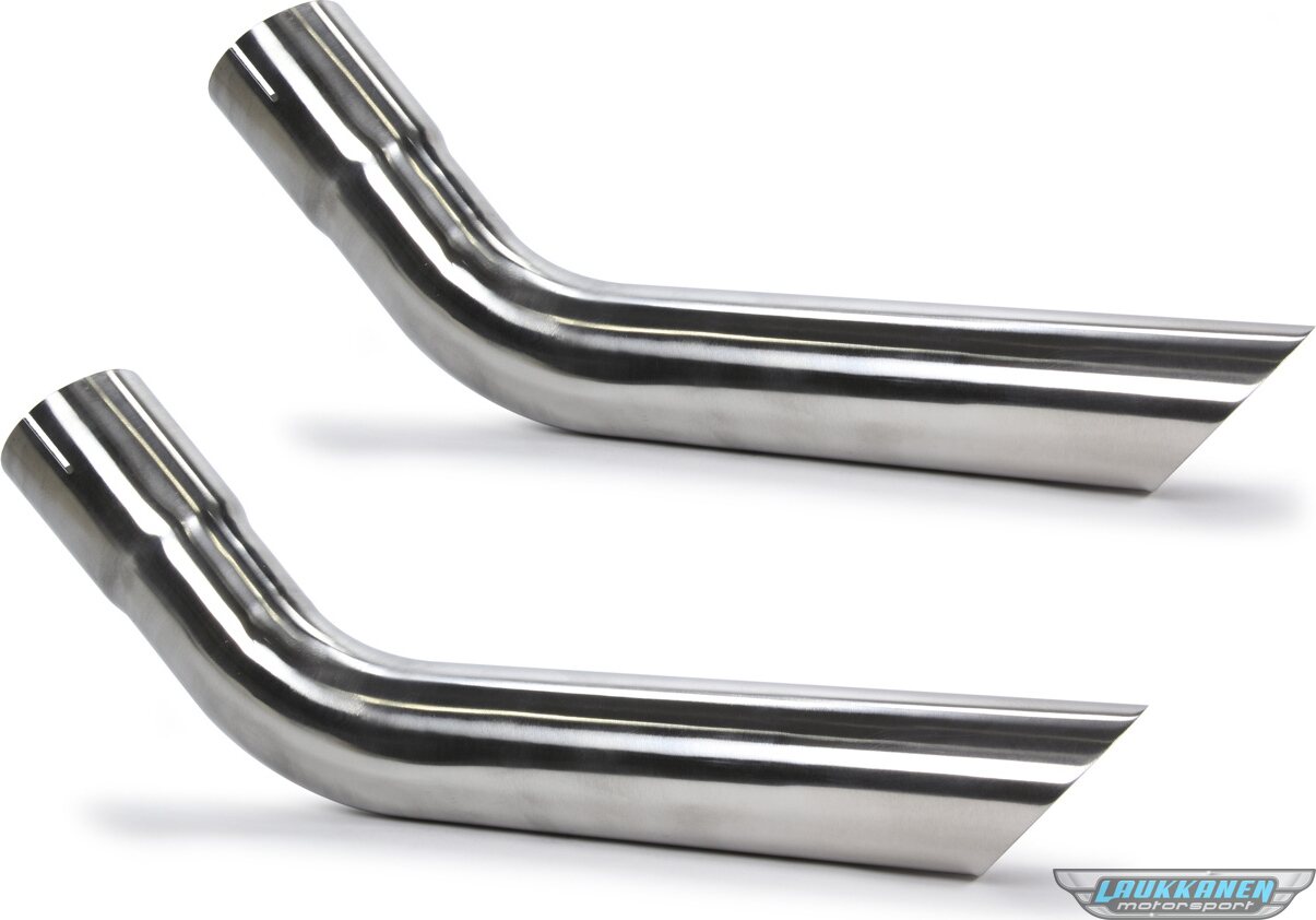 Exhaust Tip - Hockey Stick Tips - Long - Slip-On - 2-1/2 in Inlet Pipe Diameter - 3-1/4 in Round Outlet - 20 in Long - Single Wall - Cut Edge - Angled Cut - Stainless - Polished - Pair